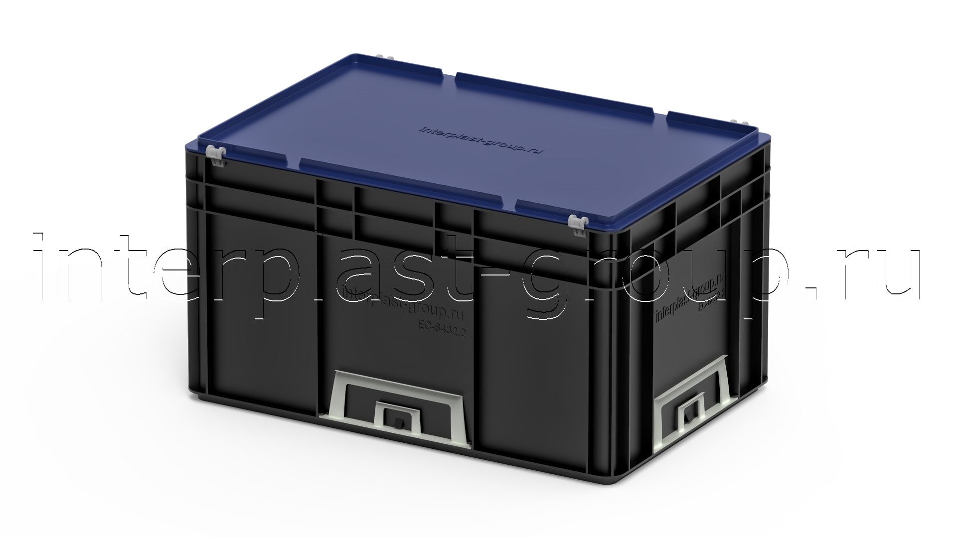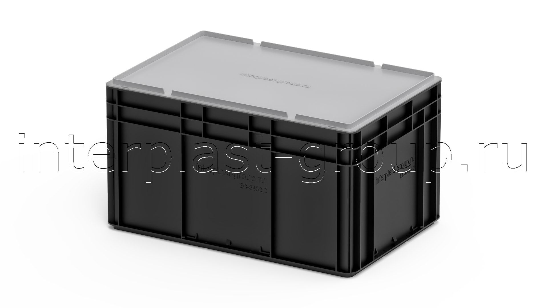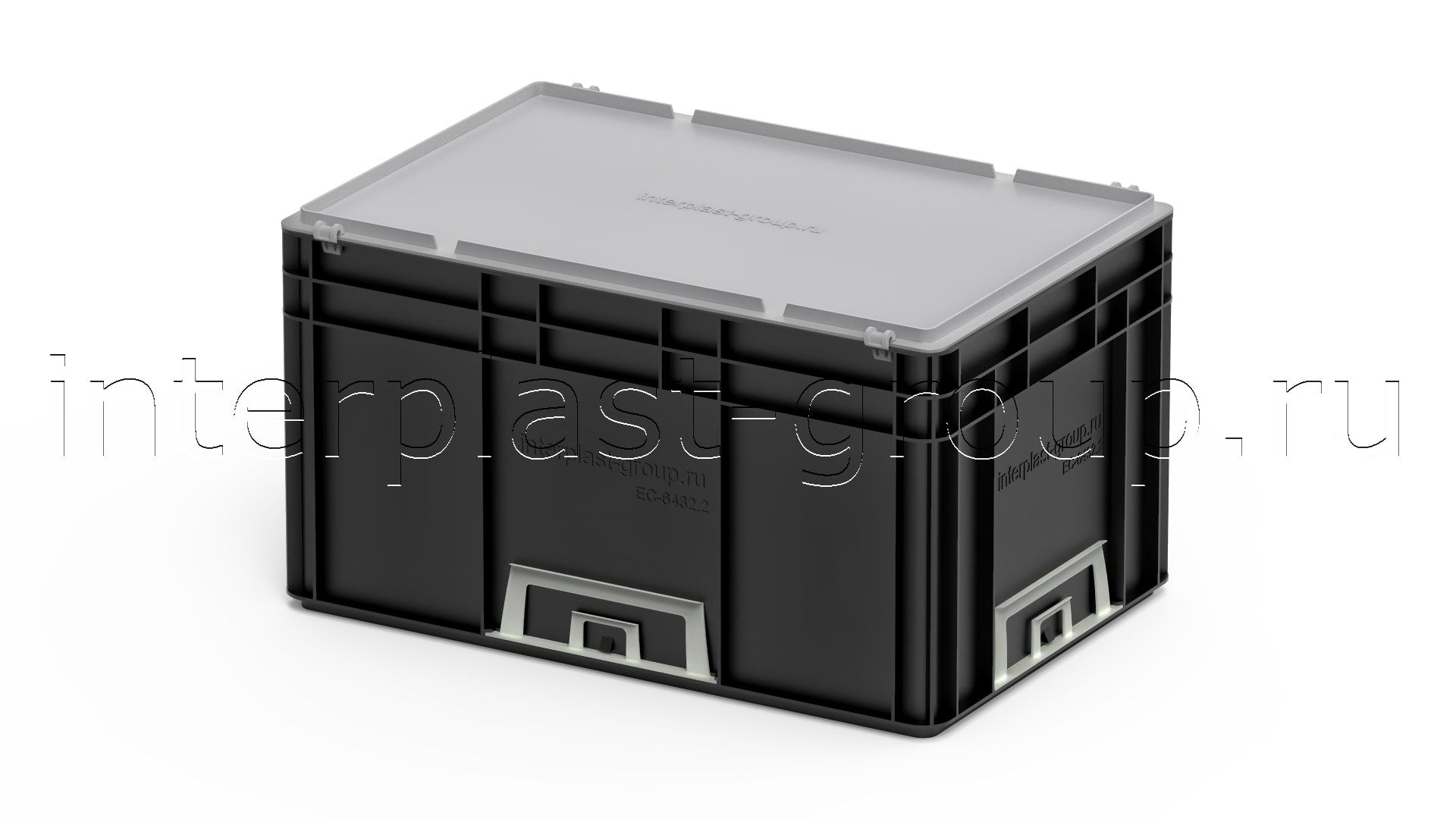 Евроконтейнер закрытые ручки/сплошное дно (черный), 600x400x320 мм
