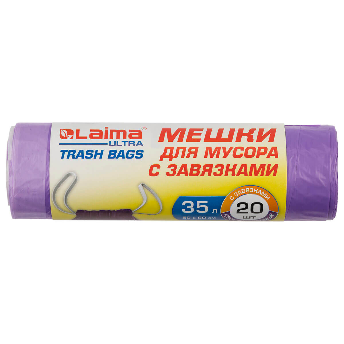 Мешки для мусора 35 л, с завязками, фиолетовые, в рулоне 20 шт., ПНД, 13 мкм, 600х500 мм, LAIMA ULTRA, 607685 в Энгельсе