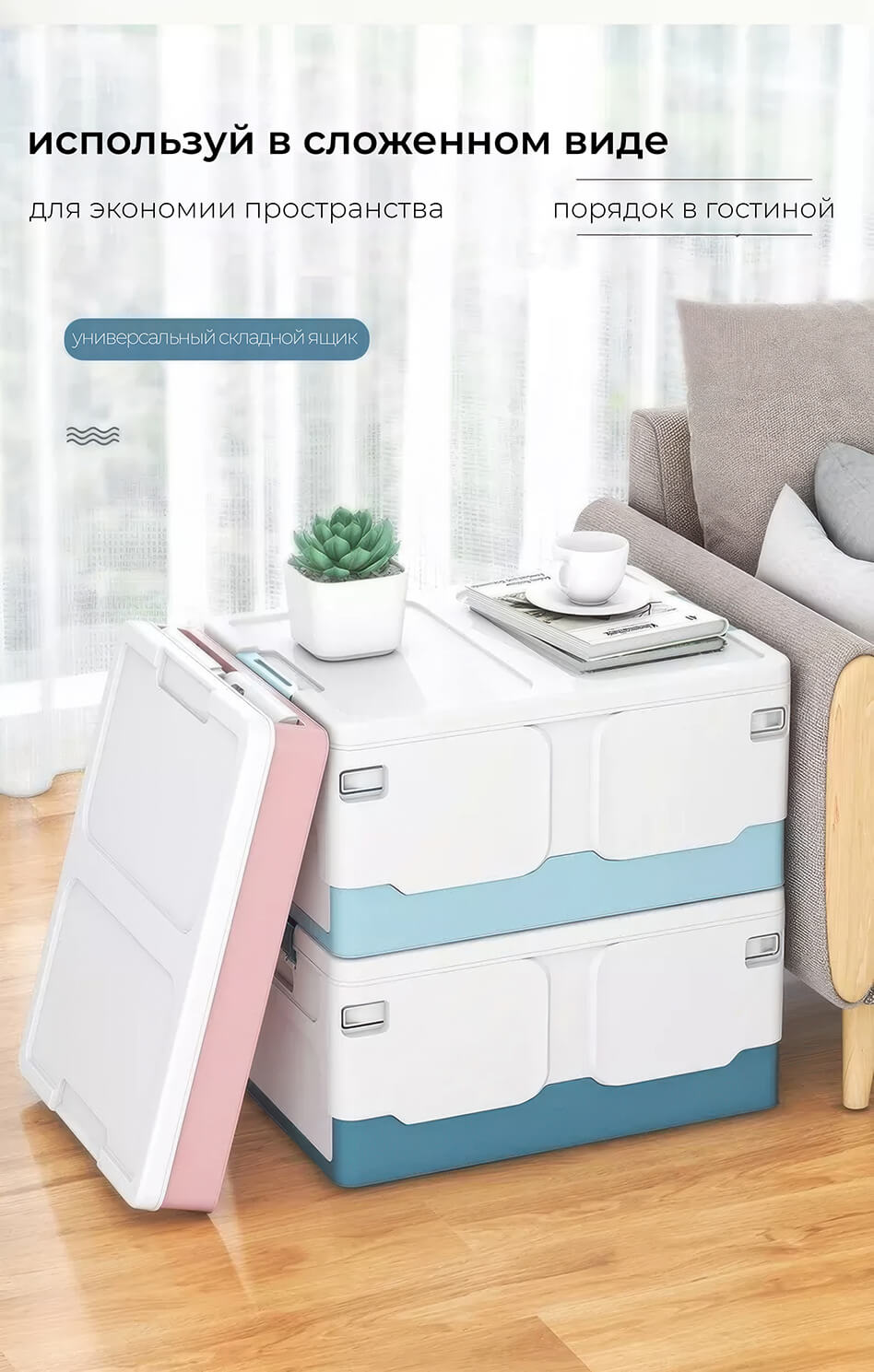 Складной ящик 370х240х240 мм, бело-синий – удобное и стильное решение для хранения