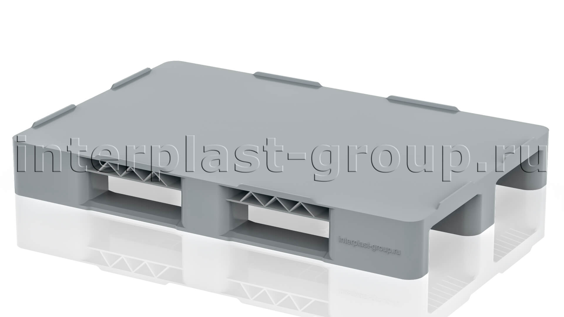 Поддон пластиковый сплошной на двух полозьях, 1200x800x150 мм (серый)