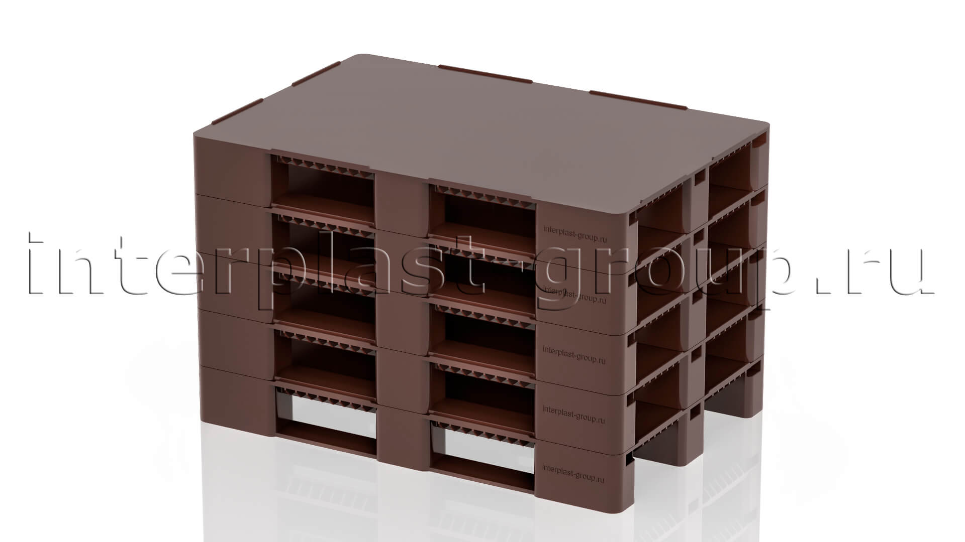 Многофункциональный поддон, производимый по технологии литья под высоким давлением с включением вспенивающего реагента. Разработан для хранения и перевозки тяжелых грузов.