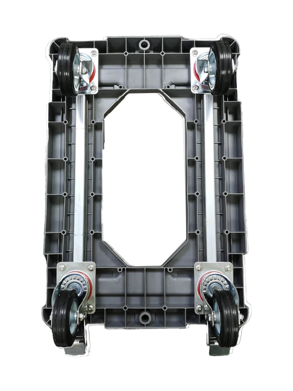 Но это еще не все! Для тех, кому нужно перевозить еще больший объем грузов, наша тележка может быть оснащена двумя металлическими трубами по длинным сторонам, что увеличит грузоподъемность на целых 100 кг! Ведь мы заботимся о вашем комфорте и экономии времени.