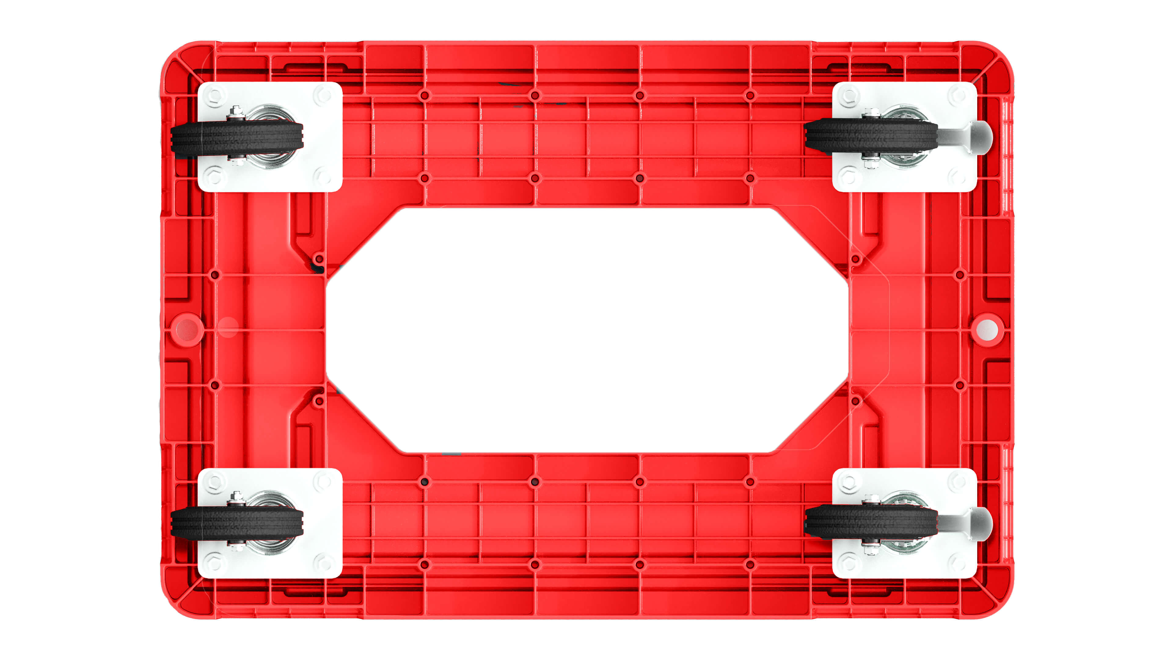 Конструкция тележки разработана с особым акцентом на прочность и надежность. Она сплошная и имеет усиленное место для захвата, позволяющее удобно манипулировать тележкой крючком. Большое количество ребер жесткости обеспечивает ей допустимую статическую и динамическую нагрузку до впечатляющих 300 кг.
