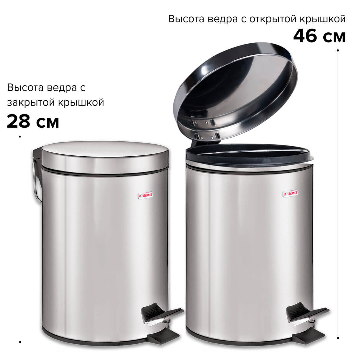 Ведро-контейнер для мусора (урна) с педалью LAIMA Classic, 5 л, зеркальное, нержавеющая сталь, со съемным внутренним ведром