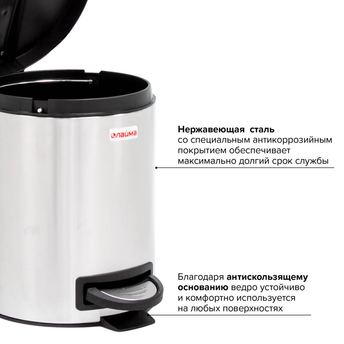 Ведро-контейнер для мусора (урна) с педалью LAIMA Modern, 5 л, матовое, нержавеющая сталь